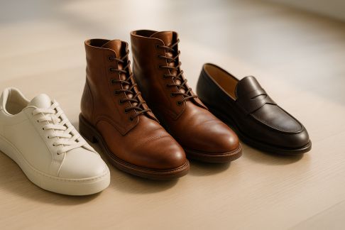 - Pour lui : Derby souples en nubuck, mocassins estivaux, baskets blanches premium ou desert boots selon l’ambiance.
