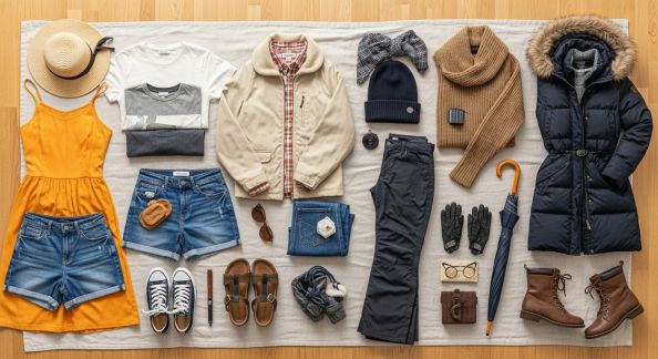 - Accessoires météo : lunettes de soleil, gants, écharpes, parapluies aux motifs ludiques, bottes de pluie imprimées.